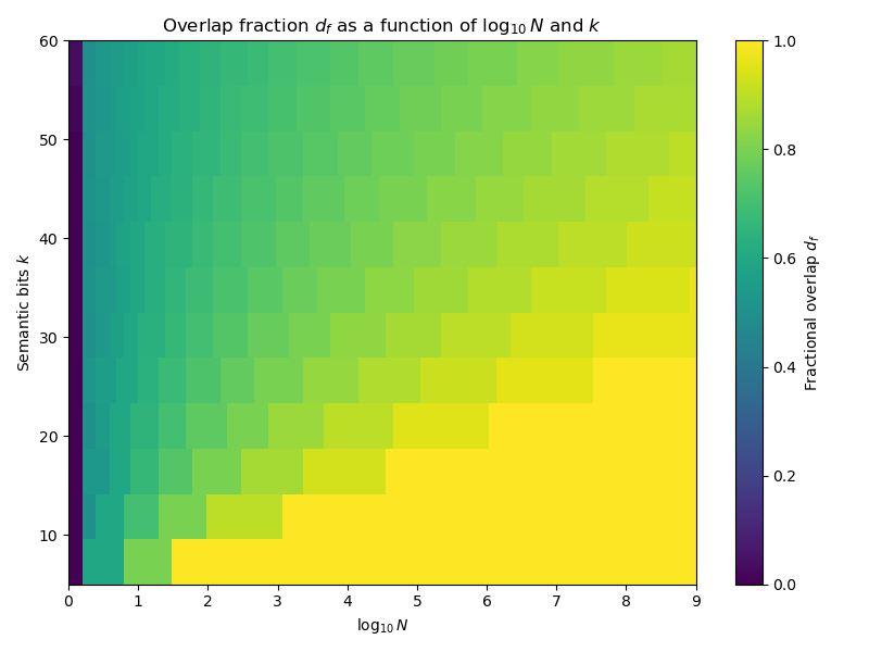 Now that we’ve concluded stories can be abstracted, let’s investigate the “crowdedness” of the space of stories. Let’s suppose a story’s “semantic type” can be encoded in only \(k\) “semantic” bits4, similar to our analysis of pictures. If there are \(N\) “evenly distributed” stories, how close are they to each other?