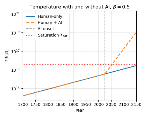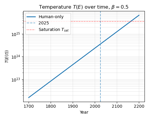 Here I’ve let AI increase energy expenditures by 5x. This massively decreases the saturation timeline